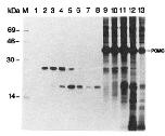 13, total extracts of labeled proteins (0.2 lobe/lane) corresponding to