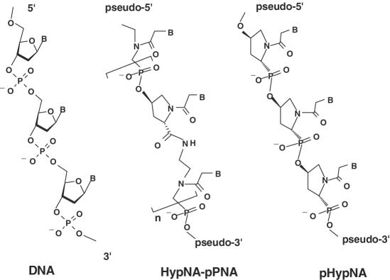 Figure 1. General chemical structures of HypNA-pPNA and pHypNA DNA mimics.