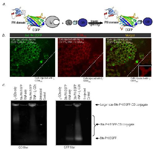 Intein-mediated site-specific conjugation of Quantum Dots to proteins in vivo.