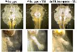 Fig. 3. TR is necessary for the metamorphic effects of TH. Transgenic expression of a dominant negative TR (dnTR) blocks TH-induced metamorphosis. Wild type animals treated with TH underwent characteristic changes, including gill resorption and limb morphogenesis (compared the middle panels to the ones on the left). The TH-treatment failed to induce such changes in the sibling transgenic animals (right panels, which resemble the left but not the middle ones) (Buchholz et al., 2003).