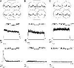Figure 5. The interaction between L356 and F380 is within the same subunit. Diagrams representing subunit composition of the tandem L356XtandemWT (A, top row), the tandem L356XtandemF380X (B, top row), and the tandem L356X+F380XtandemWT (C, top row) in which X = C or A. Each subunit is represented by a circle, whereas the linker of 10 amino acids between two subunits of the tandem is represented by an arc (see Materials and methods). In the middle row, cGMP-activated currents in the presence of 1 mM cGMP at +60 mV in the tandem L356CtandemWT (A, middle row), in the tandem L356CtandemF380C (B, middle row), and in the tandem L356C+F380CtandemWT (C, middle row). In the bottom row, cGMP-activated currents in the presence of 1 mM cGMP at +60 mV in the tandem L356AtandemWT (A, bottom row), in the tandem L356AtandemF380A (B, bottom row), and in the tandem L356A+F380AtandemWT (C, bottom row). |