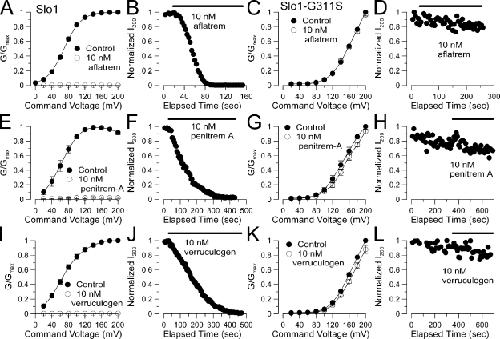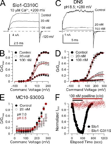 Glycine311, a determinant of paxilline block in BK channels: a novel bend in the BK S6 helix.