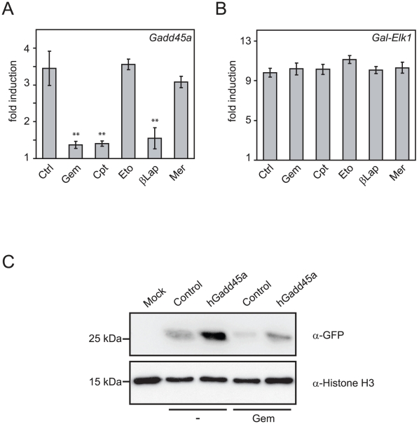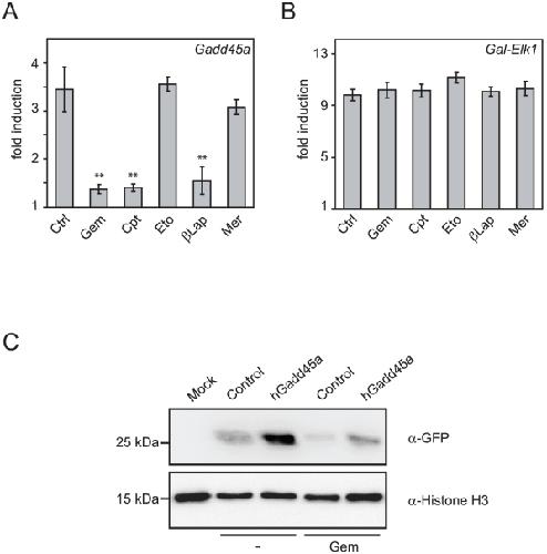 Genes referenced: calr ctrl elk1 gadd45a gal.2 gem mlh1 pou5f3