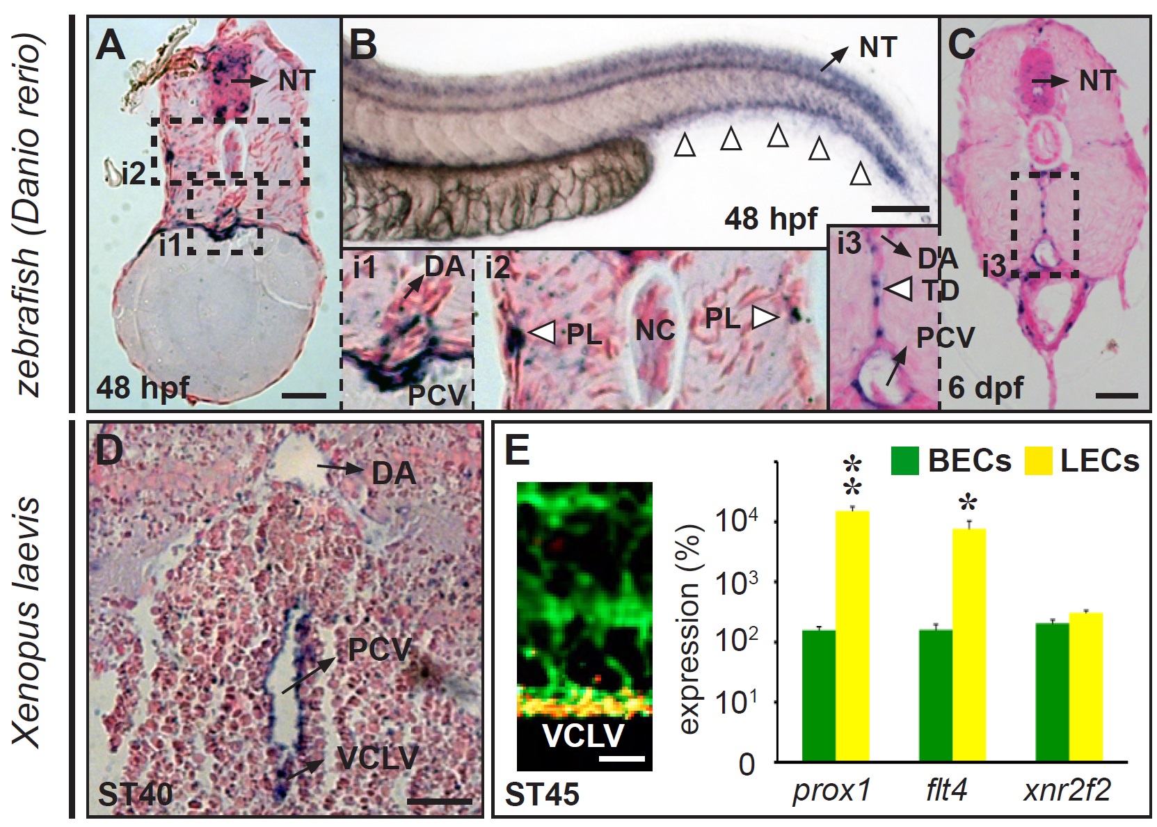 Genes referenced: flt4 gnl3 kdr nr2f2 nr2f5 prox1