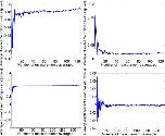 Fig. 9. Plots demonstrating convergence of estimated particle displacement as a function of measurements used in the estimation. The plots on the left side display mean displacement along the x-axis, the right plots mean displacement along the z-axis. The upper two plots are extracted from the pathline in the red rectangle in Fig. 8, the lower two plots are extracted from the pathline in the blue rectangle.