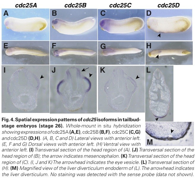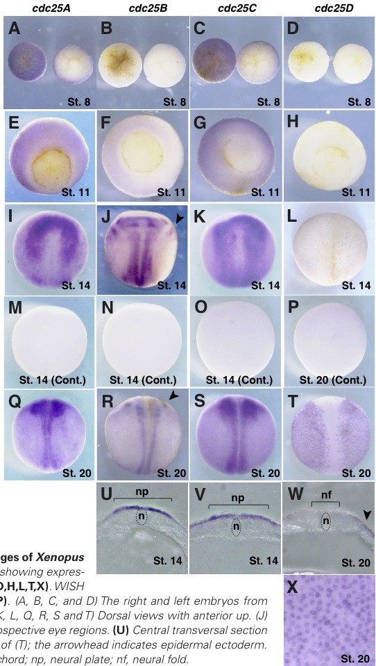 Temporal and spatial expression patterns of Cdc25 phosphatase isoforms during early Xenopus development.