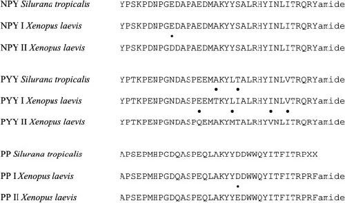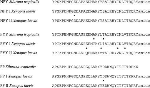 Characterization of the neuropeptide Y system in the frog Silurana tropicalis (Pipidae): three peptides and six receptor subtypes.