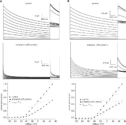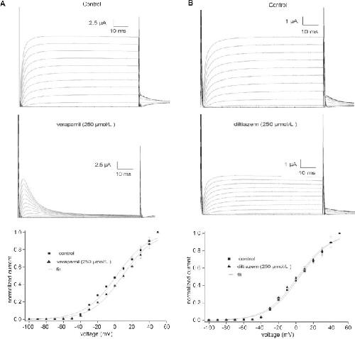 Effects of L-type Calcium Channel Antagonists Verapamil and Diltiazem on fKv1.4ΔN Currents in Xenopus oocytes.