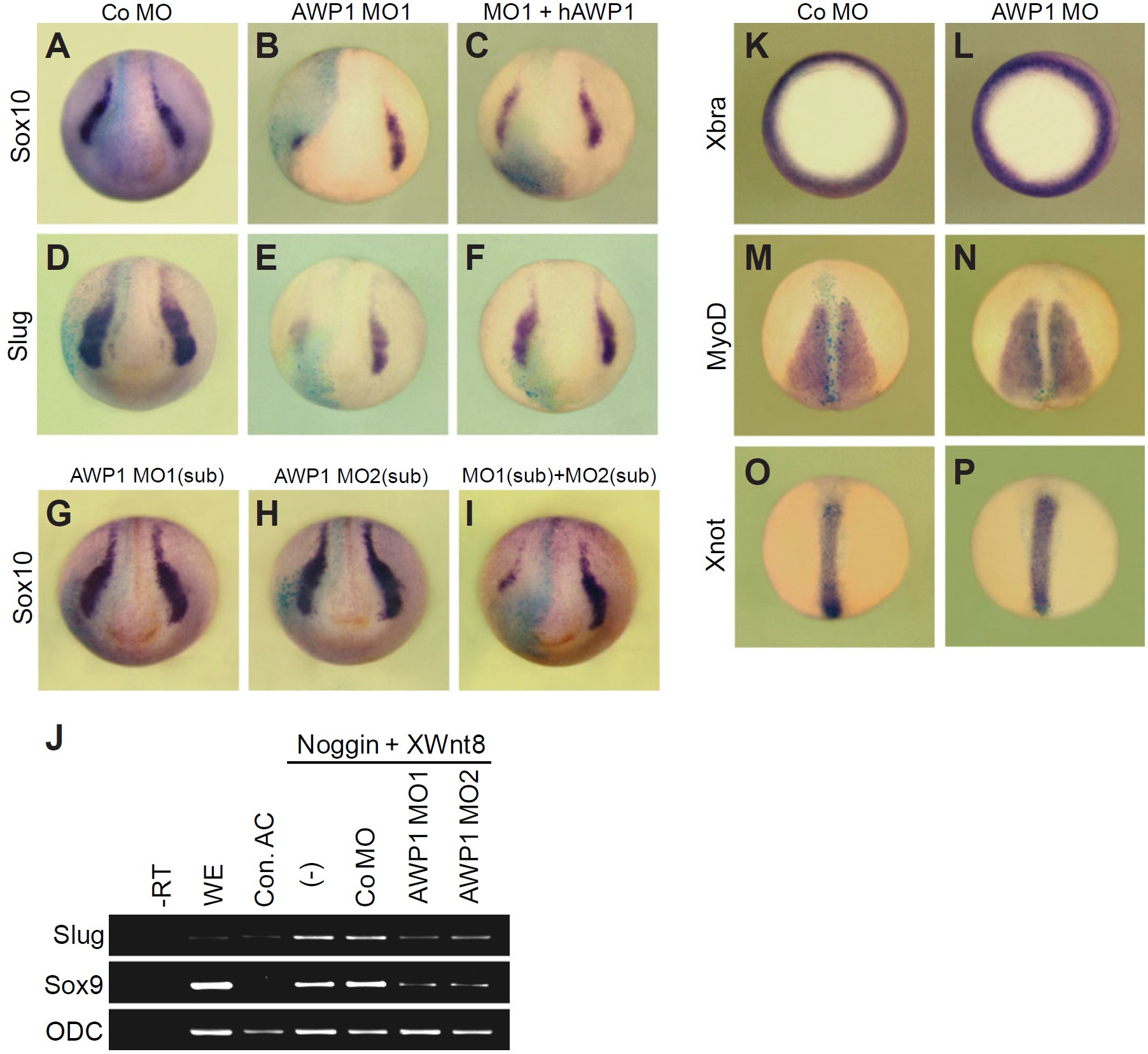 in the dorsal-marginal region with Co MO (10 ng) or AWP1 MO1 (10 ng) and subsequently subjected to in situ
