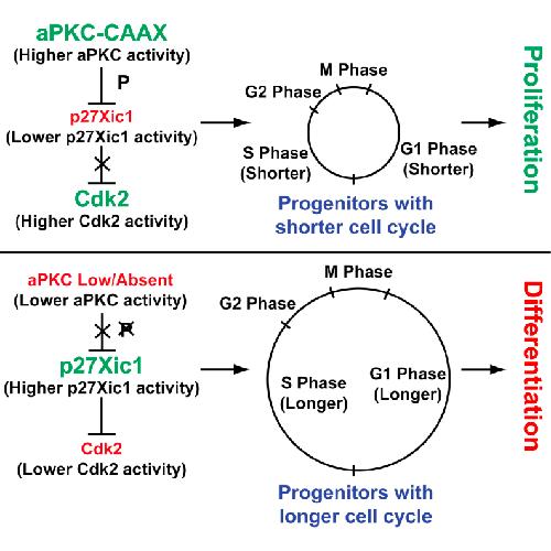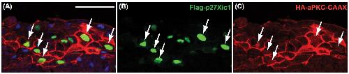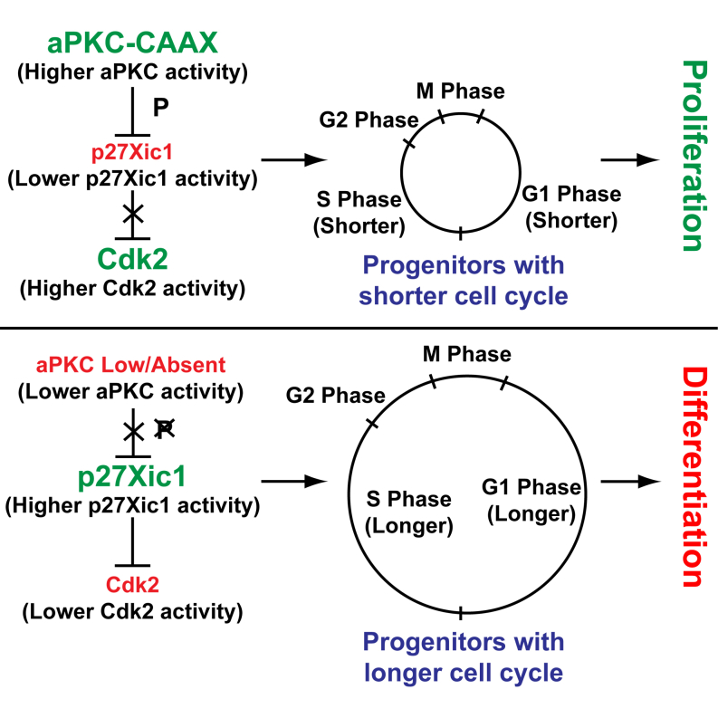 aPKC phosphorylates p27Xic1, providing a mechanistic link between apicobasal polarity and cell-cycle control.