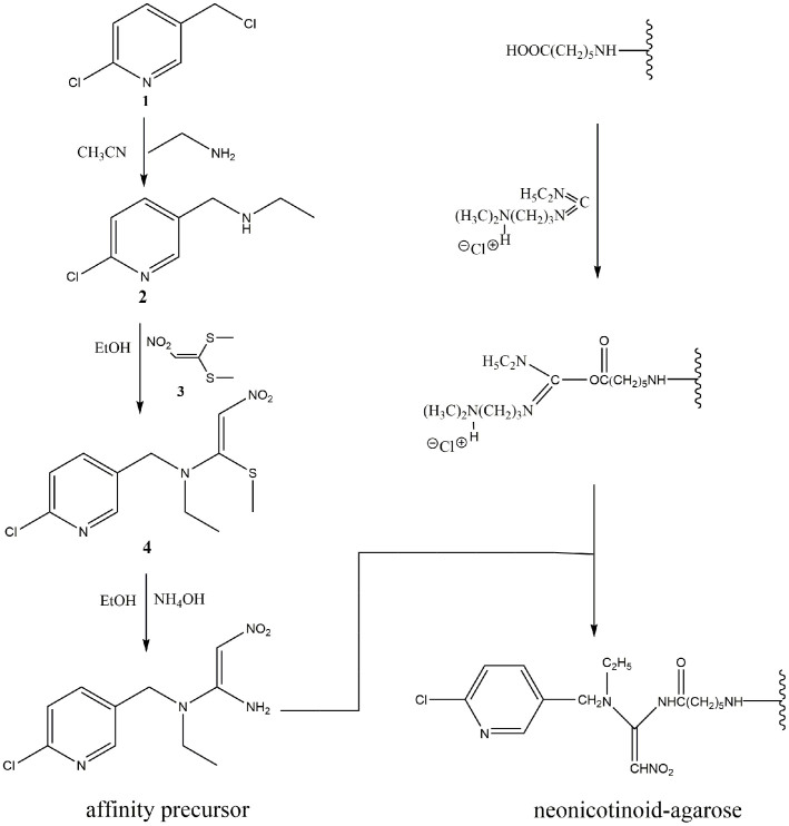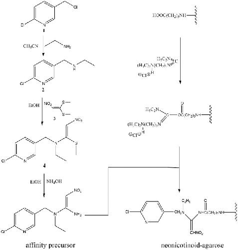 Figure 6. Synthesis of affinity precursor and preparation of neonicotinoid-agarose affinity gel.