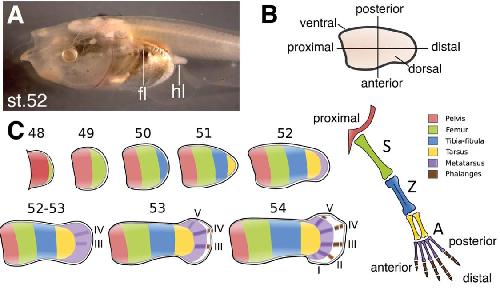 Xenopus laevis, the South African clawed frog, is a well-established model organism for the study of developmental biology and regeneration due to its many advantages for both classical and molecular studies of patterning and morphogenesis. While contemporary studies of limb development tend to focus on models developed from the study of chicken and mouse embryos, there are also many classical studies of limb development in frogs. These include both fate and specification maps, that, due to their age, are perhaps not as widely known or cited as they should be. This has led to some inevitable misinterpretations- for example, it is often said that Xenopus limb buds have no apical ectodermal ridge, a morphological signalling centre located at the distal dorsal/ventral epithelial boundary and known to regulate limb bud outgrowth. These studies are valuable both from an evolutionary perspective, because amphibians diverged early from the amniote lineage, and from a developmental perspective, as amphibian limbs are capable of regeneration. Here, we describe Xenopus limb morphogenesis with reference to both classical and molecular studies, to create a clearer picture of what we know, and what is still mysterious, about this process.