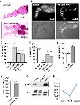 Figure 2. Mitochondria Enter a Low-Energy State of Respiratory Quiescence to Promote Glycogen Storage in Late Oogenesis(A, C, and E) Ovaries from Oregon R females fixed and stained with ATP5a antibodies (red) and DAPI (blue).(B, D, and F) Ovaries from Oregon R females were stained with the mitochondrial membrane potential stain TMRE.(G) Stage-specific quantification of the % of TMRE-nurse cells from wild-type ovarioles.(H) Quantification of TMRE fluorescence from stage 8 and stage 14 follicle cells and nurse cells.(I) Complex I and III compound activity from early follicles, stage 14 oocytes, and 12- to 16-hr embryos.(J) Complex II and III compound activity from early follicles, stage 14 oocytes, and 12- to 16-hr embryos.(K) Complex II and III compound activity from early follicles, stage 14 oocytes, and 12- to 16-hr embryos.(L and M) GC/MS measurements of glycolytic (M) and TCA cycle (N) intermediates from stage 8 and stage 10 follicles.(N) qPCR quantification of relative nuclear and mitochondrial DNA content from stage 10 follicles and stage 14 oocytes.Error bars represent SD. âp < 0.05; ââp < 0.005. |