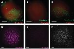 Fig. 4. Maintenance of nucleolin and thio-T staining of isolated Xenopus nuclei (GVs) is RNA dependent. (A-C) Alexa Fluor 568 Phalloidin-stained (red) stage V-VI Xenopus GVs were left untreated (A) or treated with RNase A (B) or Xrn1 (C) for 30 min in the presence of 50 μM thio-T (green). Scale bars: 100 μm. (D-F) Untreated (D) or RNase A-treated (E) GVs were immunostained for nucleolin (magenta). (F) Dark field image nucleus. Scale bars: 100 μm.