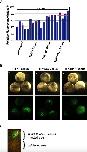 Fig. 8. Subcellular localization of mutant and truncated THIK-1. (A) Detection of endocytosis of THIK1(PP)-Venus by confocal microscopic analysis. The images of HeLa cells expressing both THIK1(PP)-Venus and RFP-EEA1 proteins were captured through green and red fluorescence channels using a confocal microscope, and representative and merged images are displayed. Scale bar indicates 10 μm. (B) A summary of the assessment of THIK-1 internalization. The numbers of transfected cells displaying overlap of green and red fluorescence were counted under the microscope and those percentages were calculated. Numbers in parentheses indicate the numbers of transfected cells examined in two independent experiments. (C) A schematic diagram of the constructs. Both THIK1([AP]/PP)-Venus and THIK1([AP]/PP)âC-Venus contain the AP amino acid acceptor sequence (GLNDIFEAQKIEWHE) in the first extracellular loop domain. (D) Membrane expression of the modified THIK-1 proteins. The fluorescence images of HeLa cells expressing either THIK1([AP]/PP)-Venus or THIK1([AP]/PP)âC-Venus with RFP-Mem were captured through green and red fluorescence channels using a confocal microscope, and representative and merged images are displayed. Scale bar indicates 10 μm. (E) A schematic diagram of the constructs. Igκ/BirA expressed in cells is able to biotinylate THIK-1 carrying the AP sequence. seCFP-Mem carrying the Ha-ras farnesylation sequence was generated for labeling of the plasma membrane. (F) Detection of THIK1([AP]/PP)-Venus localizing on the cell surface by microscopy. The images of HeLa cells expressing seCFP-Mem, THIK1([AP]/PP)-Venus, and Igκ/BirA were captured through blue, green, and red fluorescence channels using a confocal microscope, and the representative and merged images are displayed. Scale bar indicates 10 μm. (G) Comparison of the expression levels of THIK1([AP]/PP)-Venus and THIK1([AP]/PP)âC-Venus proteins on the cell surface. Both yellow (Venus) and red (Alexa Fluor 568) fluorescence images of CFP-positive cells were captured by microscopy and the fluorescence ratio of red to yellow was estimated using MetaMorph software. Note that even in BirA-nonexpressing transfected cells, the red fluorescent dye conjugated to streptavidin nonspecifically bound to the cell surfaceâred fluorescence was detectable at a high background level. A total of twenty-four to twenty-eight transfected cells were examined in four independent experiments. Statistical validation was performed by Student's t-test. A single asterisk indicates p < 0.05, a double asterisk shows p < 0.01, and n.s. is not significant. |