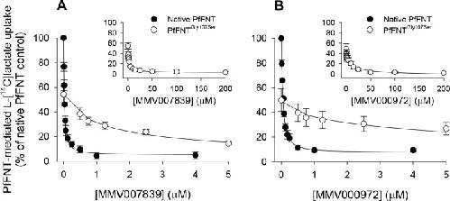 The Malaria Parasite's Lactate Transporter PfFNT Is the Target of Antiplasmodial Compounds Identified in Whole Cell Phenotypic Screens.