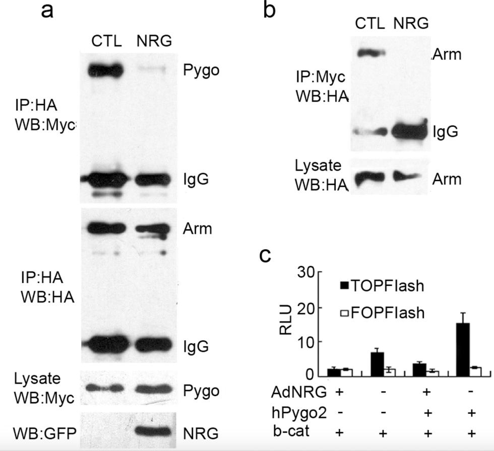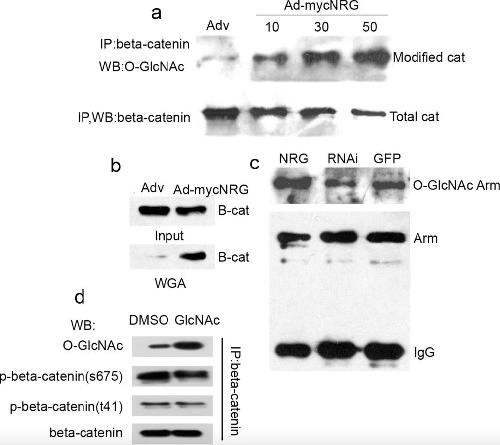 NRAGE induces β-catenin/Arm O-GlcNAcylation and negatively regulates Wnt signaling.