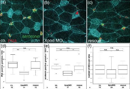 Serotonin and MucXS release by small secretory cells depend on Xpod, a SSC specific marker gene.