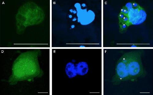 Fig 2. Confocal microscopy of Bd-infected host cells after 24 hours.