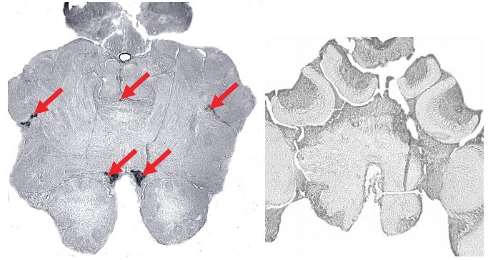 Figure S11. In situ hybridization showing the localization of the amdat transcript in the honey bee brain (adult worker). Dopamine interneurones somata clusters are indicated by arrows. See Supplementary Material for more details. |