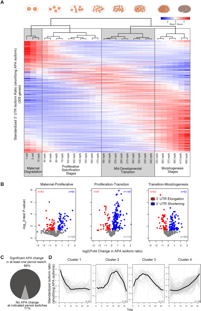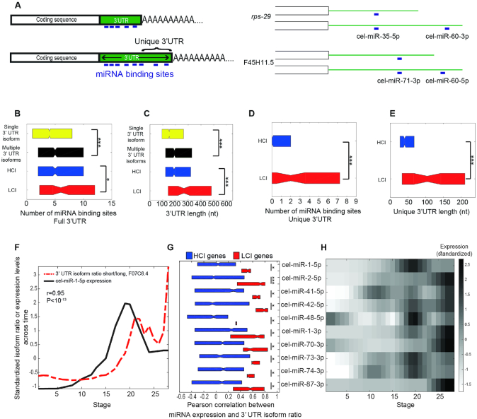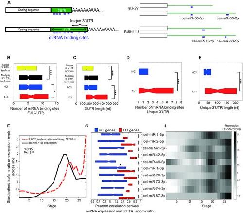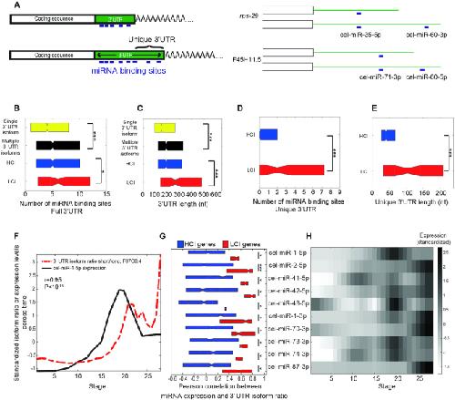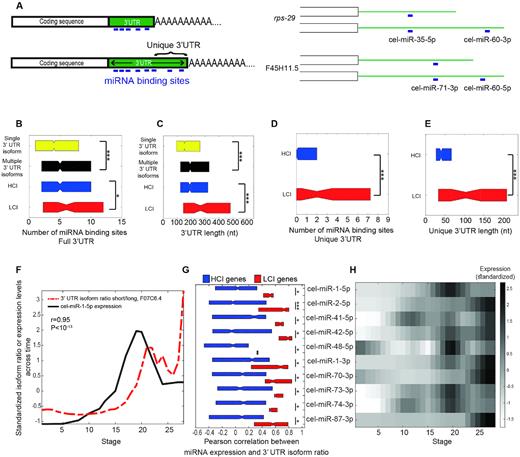 Alternative polyadenylation (APA) produces isoforms with distinct 3'-ends, yet their functional differences remain largely unknown. Here, we introduce the APA-seq method to detect the expression levels of APA isoforms from 3'-end RNA-Seq data by exploiting both paired-end reads for gene isoform identification and quantification. We detected the expression levels of APA isoforms in individual Caenorhabditis elegans embryos at different stages throughout embryogenesis. Examining the correlation between the temporal profiles of isoforms led us to distinguish two classes of genes: those with highly correlated isoforms (HCI) and those with lowly correlated isoforms (LCI) across time. We hypothesized that variants with similar expression profiles may be the product of biological noise, while the LCI variants may be under tighter selection and consequently their distinct 3' UTR isoforms are more likely to have functional consequences. Supporting this notion, we found that LCI genes have significantly more miRNA binding sites, more correlated expression profiles with those of their targeting miRNAs and a relative lack of correspondence between their transcription and protein abundances. Collectively, our results suggest that a lack of coherence among the regulation of 3' UTR isoforms is a proxy for selective pressures acting upon APA usage and consequently for their functional relevance.