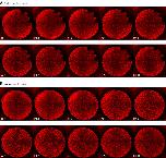 Figure 2—figure supplement 1. Mitosis initiating from a source at the edge of a well.In this cycle, the first place at which mitosis occurred was a point on the edge of the well with no obvious nucleus nearby. Ten minutes later, mitosis began initiating at several nuclei at once. |