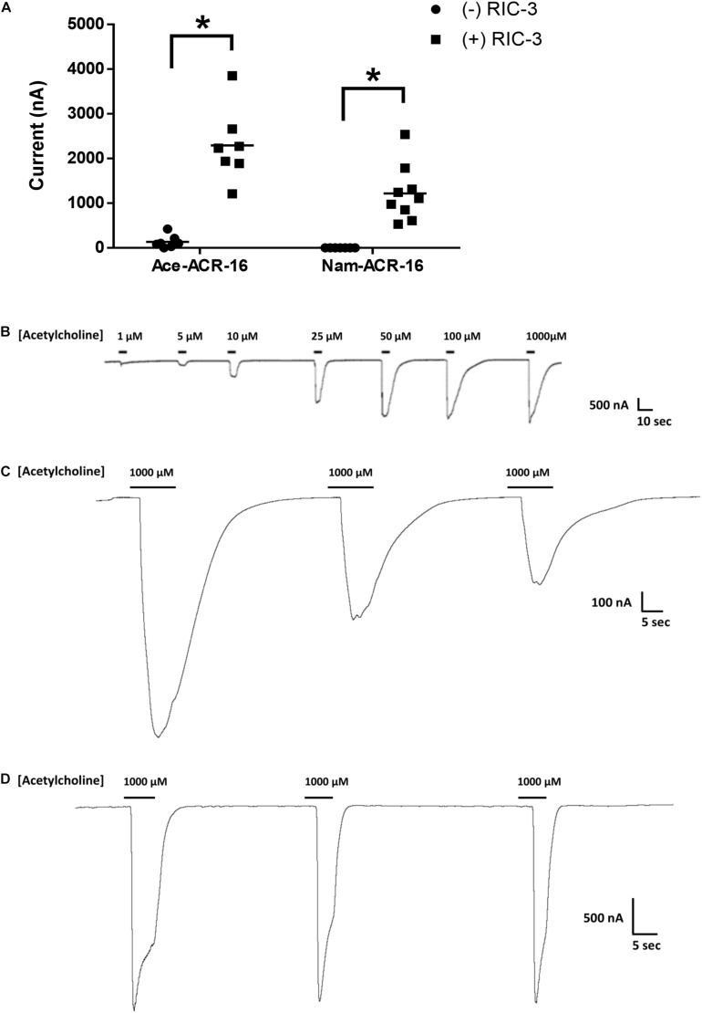 A Functional Comparison of Homopentameric Nicotinic Acetylcholine Receptors (ACR-16) Receptors From Necator americanus and Ancylostoma ceylanicum.