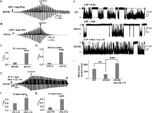 Bompadre, G551D and G1349D, two CF-associated mutations in the signature sequences of CFTR, exhibit distinct gating defects. 2007, Pubmed