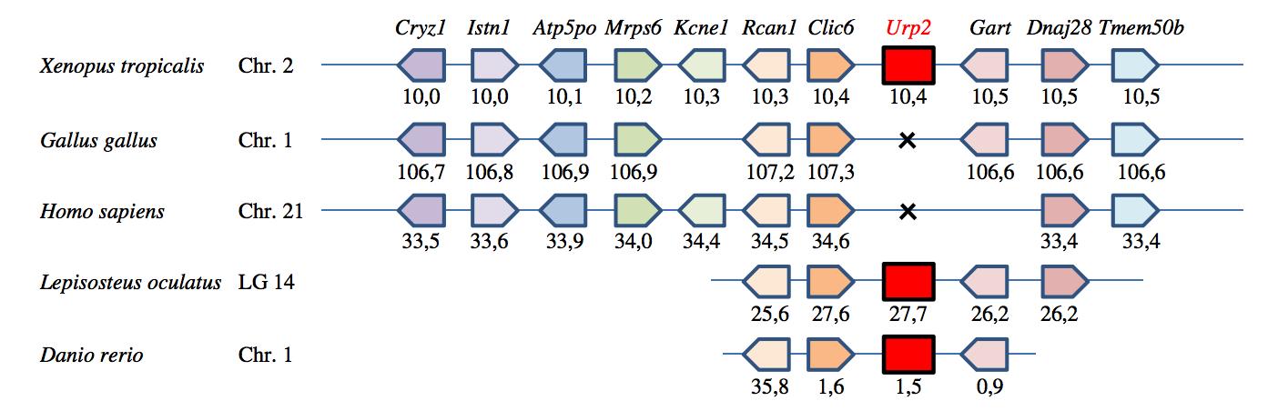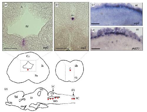 Genes referenced: pkd2l1 psmd6 rps13 sub1 uts2r uts2rl3 zrsr2