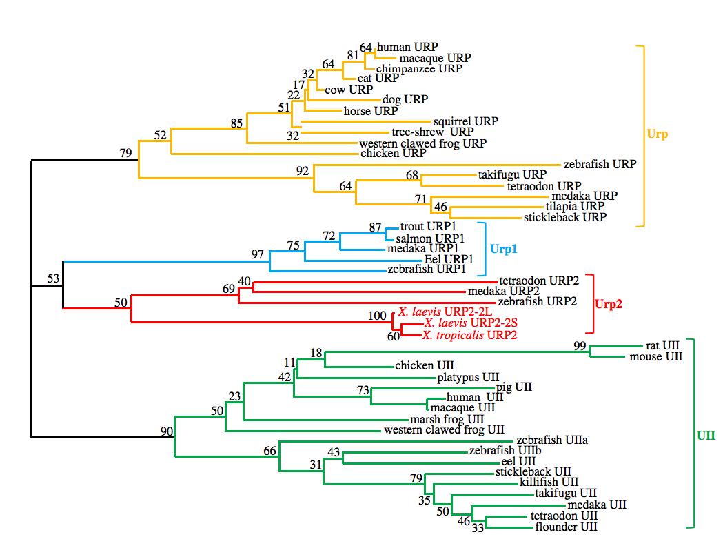Conserved role of the urotensin II receptor 4 signalling pathway to control body straightness in a tetrapod.