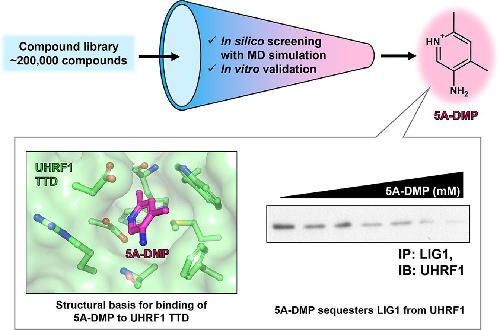 Structure-based screening combined with computational and biochemical analyses identified the inhibitor targeting the binding of DNA Ligase 1 to UHRF1.
