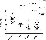 Figure 6. The thiazide test result verified hNCC dysfunction in GS patients, while no apparent difference was found among the GS patients with or without T60M or D486N mutation. The net increase in chloride fractional excretion (FECl) undergoing thiazide test in 20 healthy controls (4.46 ± 1.04%), 3 GS patients with T60M mutation (2.07 ± 0.62%), 7 GS patients with D486N mutation (1.13 ± 1.19%), and 25 GS patients without any T60M or D486N mutation (0.92 ± 1.09%). One-way ANOVA was performed to evaluate the differences among three subgroups of GS patients, followed by least significant difference post hoc test for each two subgroups. The differences in thiazide test between healthy volunteers and each subgroup of GS patients were compared using unpaired t-tests.