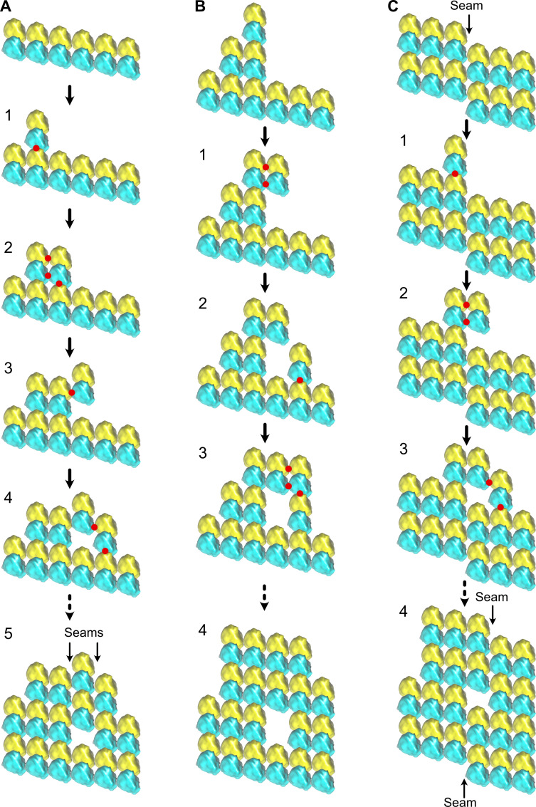 Changes in seam number and location induce holes within microtubules assembled from porcine brain tubulin and in Xenopus egg cytoplasmic extracts.