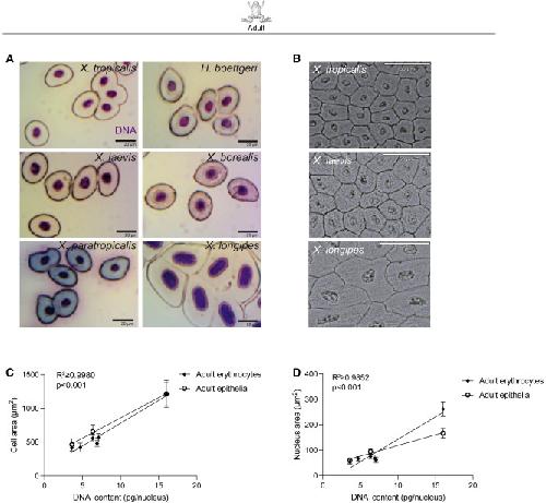 Figure 2. Scaling of cells and nuclei in adult pipid frog species