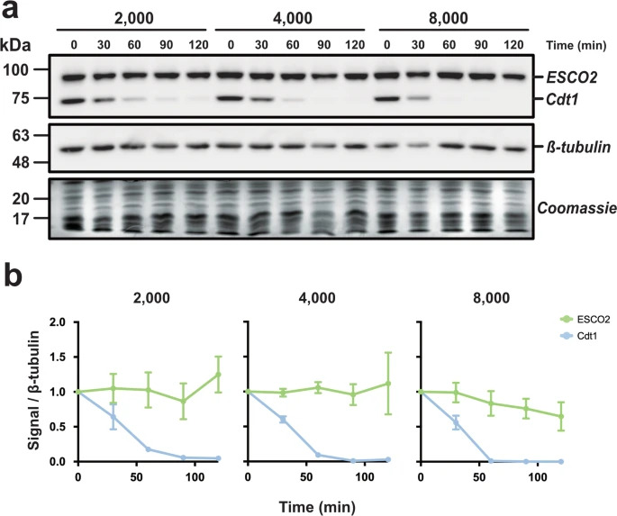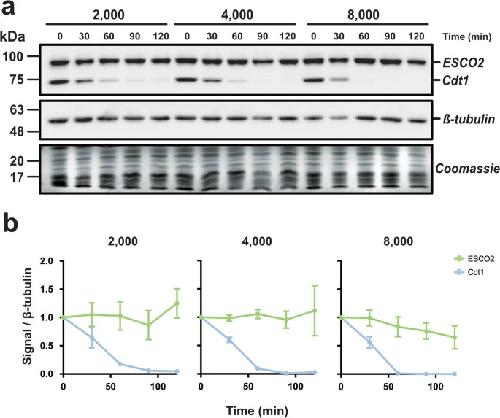 The cohesin modifier ESCO2 is stable during DNA replication.