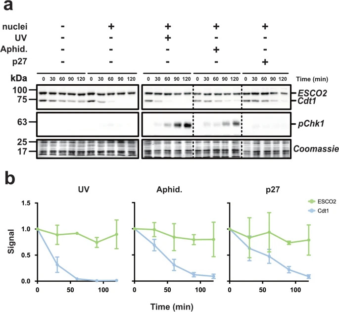 Genes referenced: cdt1 chek1 esco2 pcna smc3