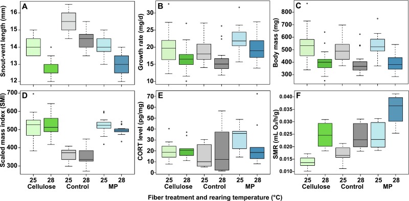 Microplastics (MP) are an abundant, long-lasting, and widespread type of environmental pollution that is of increasing concern as it might pose a serious threat to ecosystems and species. However, these threats are still largely unknown for amphibians. Here, we used the African clawed frog (Xenopus laevis) as a model species to investigate whether polyethylene MP ingestion affects amphibian growth and development and leads to metabolic changes across two consecutive life stages (larvae and juveniles). Furthermore, we examined whether MP effects were more pronounced at higher rearing temperatures. Larval growth, development, and body condition were recorded, and standard metabolic rate (SMR) and levels of stress hormone (corticosterone, CORT) were measured. We determined variation in size, morphology, and hepatosomatic index in juveniles to identify any potential consequences of MP ingestion across metamorphosis. In both life stages, MP accumulation in the body was assessed. MP ingestion was found to result in sublethal effects on larval growth, development, and metabolism, to lead to allometric carry-over effects on juvenile morphology, and to accumulate in the specimens at both life stages. In larvae, SMR and developmental rate increased in response to MP ingestion; there additionally was a significant interaction of MP ingestion and temperature on development. CORT levels were higher in larvae that ingested MP, except at higher temperature. In juveniles, body was wider, and extremities were longer in animals exposed to MP during the larval stage; a high rearing temperature in combination with MP ingestion counteracted this effect. Our results provide first insights into the effects of MP on amphibians throughout metamorphosis and demonstrate that juvenile amphibians may act as a pathway for MP from freshwater to terrestrial environments. To allow for generalizations across amphibian species, future experiments need to consider the field prevalence and abundance of different MP in amphibians at various life stages.