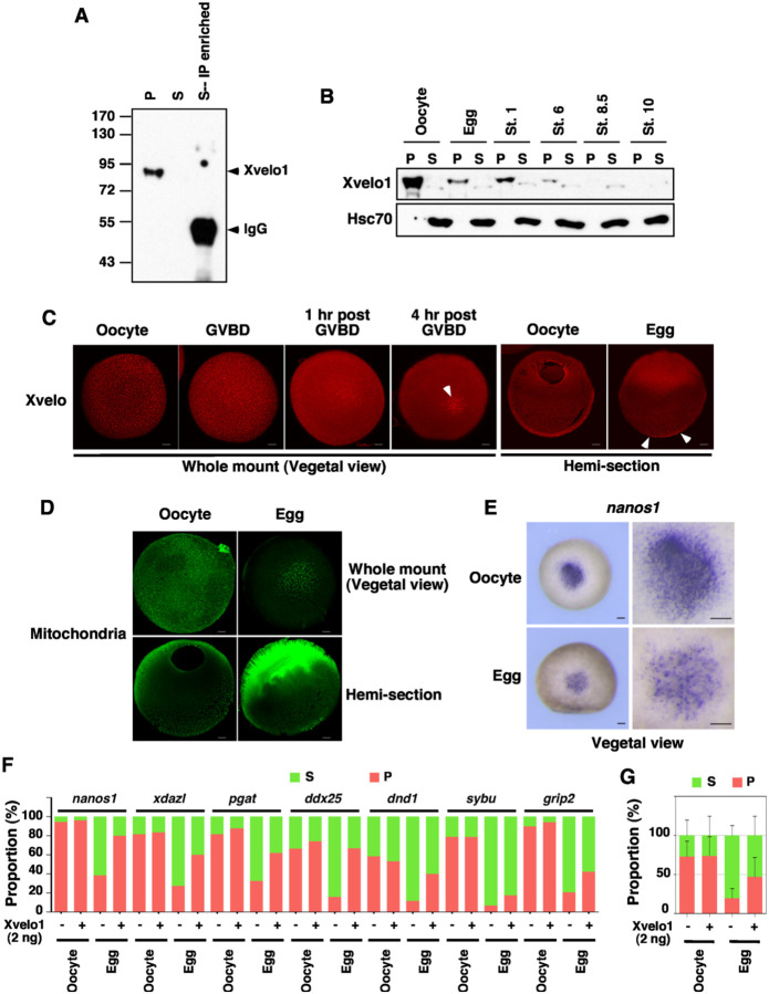 Claussen, Xvelo1 uses a novel 75-nucleotide signal sequence that drives vegetal localization along the late pathway in Xenopus oocytes. 2004, Pubmed , Xenbase