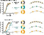 Fig. 5. Summary figure. Results from Tarvin et al. [13] are shown in the graphs on the left, from Epipedobates anthonyi (top, n = 5–9) and human (bottom, n = 6–7) nAChRs (RNA ratio 1α:7β for Epipedobates and 1α:3β for human). Epi-S and Epi-R refer to the epibatidine-sensitive and epibatidine-resistant characteristics of the receptor. These results led us to hypothesize that the mutation S108C in the human β2 subunit [α4β2(FC)] resulted in an altered stoichiometry: instead of a monophasic curve (characteristic of α4β2 nAChRs composed of 2 α4 and 3 β2 subunits), the ACh concentration–response curve for this mutant was biphasic and shifted to the right (characteristic of α4β2 nAChRs composed of 3 α4 and 2 β2 subunits. Furthermore, this alteration in the ACh sensitivity was not observed in Epipedobates receptors, which showed the same monophasic curve at all RNA ratios tested (Additional file 2). In the central panels, the predicted stoichiometry is shown as a diagram of the receptor. We now report that there is a reduction of maximal ACh-induced currents in Epipedobates receptors with C108-containing β2 subunits, likely due to reduced availability of C108-containing β2 subunits (Fig. 3). The relative number of receptors in the plasma membrane is shown on the right diagrams. No differences in ACh sensitivity were observed after biasing α4 and β2 RNA injection ratios, indicating that Epipedobates α4β2 nAChRs functionally assemble in a single stoichiometry. However, the reduced cell-surface expression of α4β2(FC) nAChRs (also observed for Epipedobates α4β2 nAChRs containing cysteine in position 108 of the β2 subunit) alters the concentration–response profile of human α4β2(FC) receptors from the monophasic (HS-like) of the wild-type nAChR to biphasic (LS-like) CRC, indicating an alternative stoichiometry. The presence of an additional mutation [β2(LC)] confers an HS-like stoichiometry but does not correct the β2-reduced availability. The studies on the human receptor numbers in the plasma membrane were obtained using concatenated receptors (Fig. 4)