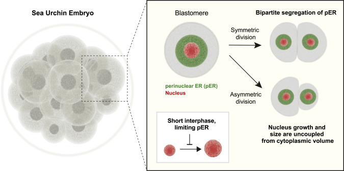In this issue of Developmental Cell, Mukherjee et al. (2020) investigate control of nuclear growth by live imaging of early embryogenesis, perturbations of blastomere dimensions, and reconstitution in vitro. The authors uncover new mechanisms of nuclear size scaling by the amount of inherited perinuclear ER and duration of interphase.