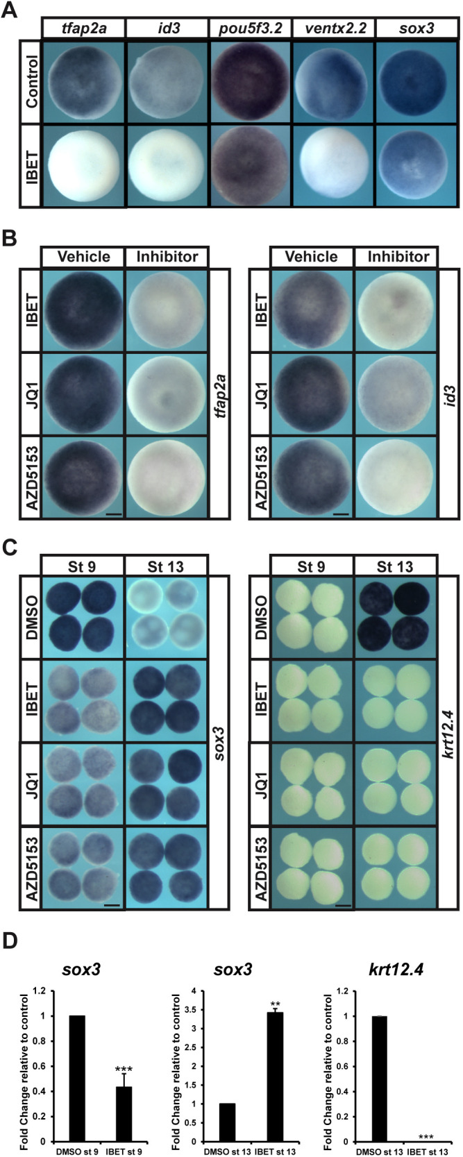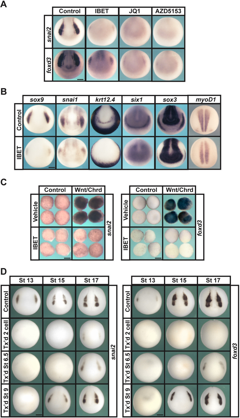 Genes referenced: a2m brd4 ccnd1 cebpa chrd efnb2 foxd3 foxi1 foxj1 hdac3 id3 krt12.4 mcidas myc myod1 not nrp1 pax3 pou5f3.2 sgk1 six1 snai1 snai2 sox11 sox17a sox3 sox9 tbxt tfap2a tp53 ventx2 wnt3 yy1 zic1