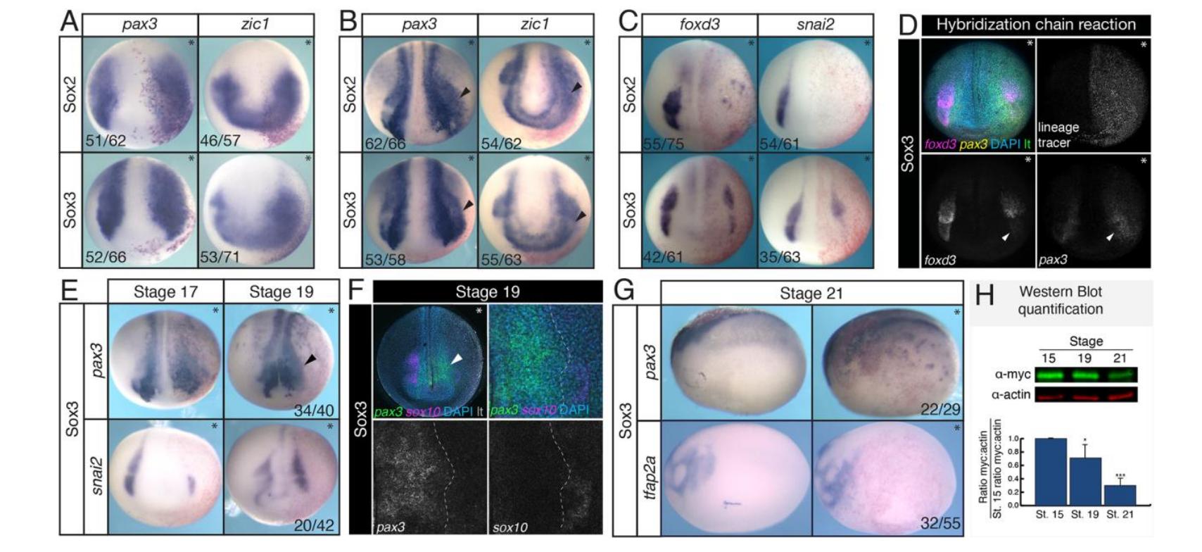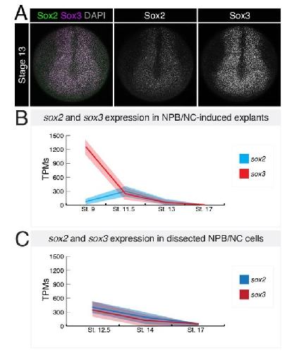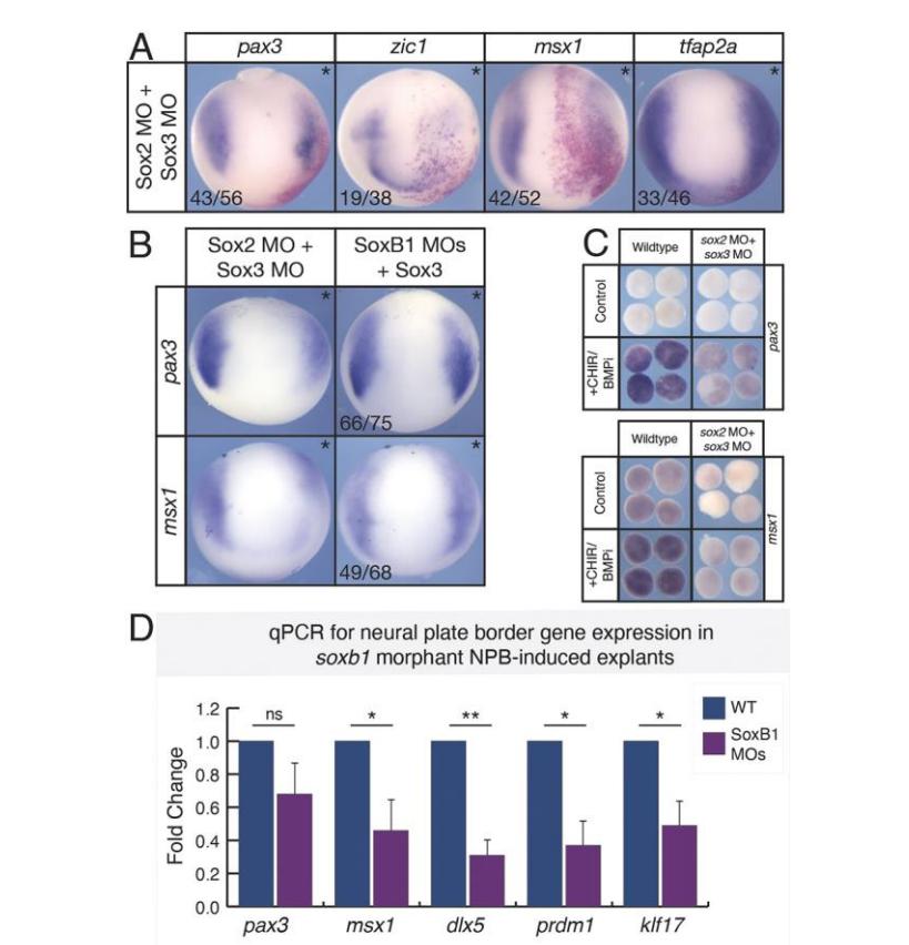 SoxB1 transcription factors are essential for initiating and maintaining neural plate border gene expression.