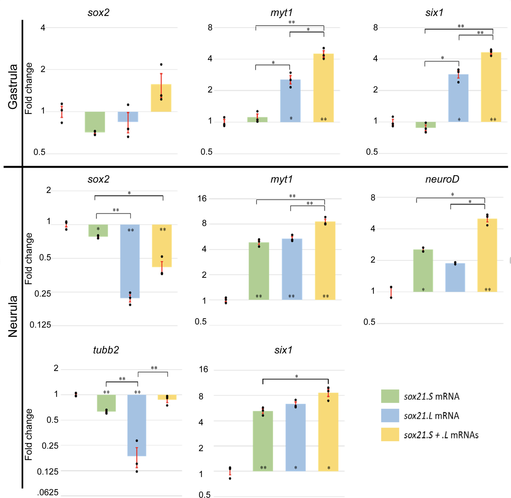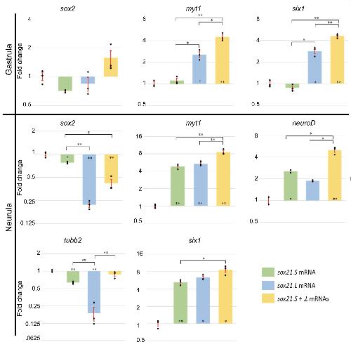 Genes referenced: myt1 neurod1 rax six1 sox2 sox21 sox3 tubb2b