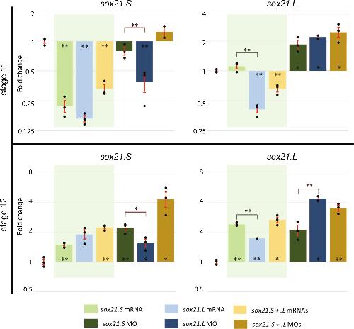 Sox21 homeologs autoregulate expression levels to control progression through neurogenesis.