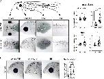 Figure 8. Model of vision-mediated melanophore differentiation. At stage 40 (top), as the visual system becomes functional, four related perioptic melanophores exist: 1) differentiated pigment+/tyrp1+, 2) differentiating tyrp1+/pigment-, 3) immature tyrp1-/pigment-awaiting a signal to differentiate, and 4) de-differentiating tyrp1-/pigment+. Light on a white background (bottom left) produces a small increase in pigmented cells, but tyrp1+ cells (pigmented and non-pigmented) decrease. Light on a black background (or 24 h enucleation; bottom right) dramatically increases pigmented and tyrp1+ melanophores. A black background drives differentiation of the tyrp1-/pigment-population into mature pigmented melanophores. |