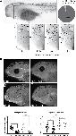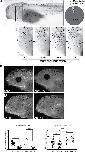 Figure 1. Enucleation and exposure to a black background dramatically increase perioptic melanophore numbers. (A) The position and size of the counting domains (dashed lines) within each region of analysis is indicated: dorsal midline, perioptic area, flank, and tail (see methods for details). In comparison to controls, melanophore number was unchanged along the dorsal midline, increased dramatically in the perioptic zone, and minimally increased in the flank and tail of enucleated larvae. (dorsal midline: