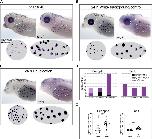 Figure 3. Enucleation triggers substantial changes in the expression of tyrp1, tyr and pmel but not mitf in perioptic melanophores. At stage 40, tyrp1, tyr, and pmel are expressed by a small number of perioptic melanophores as assessed by WMISH, whereas mitf expression is rarely visible in individual cells by this method (circular insets show perioptic region;