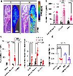 Figure 4—figure supplement 1 Preservation of whole porcine limbs with SNC80. (a) The relative metabolic rate at baseline is not statistically significantly different between control (n=3) and SNC80 (n=5) injected limbs. Metabolic rate is reduced during the treatment and washout phases for SNC80 relative to controls. (b) Mean muscle bundle area between T0 before SNC80 administration and at T3 after SNC80 administration and histographs of limb biopsy (×20 magnification) at T0 before SNC80 administration and T3 after SNC80 administration. Muscle bundle area is not affected by the administration of SNC80. (c) Optical density between T0 before SNC80 administration and at T3 after SNC80 administration and histographs of limb biopsy (×20 magnification) at T0 before SNC80 administration and T3 after SNC80 administration. Optical density is not affected by the administration of SNC80. (d) Mean intracellular distance during T0 before SNC80 administration versus T3 after SNC80 administration and histographs of limb biopsy (×10 magnification) at T0 before SNC80 administration and T3 after SNC80 administration. Red arrows indicate intracellular distance measured. Intracellular distance increases after the administration of SNC80. Statistical comparisons were performed using a mixed-effects analysis with a Sidak’s test for multiple comparisons (a) and Welch’s t-test (b–d). Data represent the mean ± SD. |