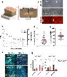 Figure 5—figure supplement 3 Characterization of human Gut and Liver Chips with integrated sensing technology. (a) Illustration of the sensor-integrated OOC unit connected to reservoir pod for automatic operation of fluid flow using pneumatic pressure (left). Inset shows a schematic of the top and bottom views of the sensor-chip-PCB compartment showing locations of transepithelial electrical resistance (TEER) electrodes and O2 sensors in the apical and basal channels. Four O2 sensing spots were added to the channels – two in the top and two in the bottom channels for across the chip measurement. Electrode connectors are necessary for remote TEER sensing. (b) Phase contrast images of Caco-2 cells seeded on sensor chip at days 1 and 10 of culture (top) and Huh7 cells seeded on sensor chip at days 1 and 10 (middle). Fluorescent images of Liver Chip at days 1 and 10 of the transduced nuclear marker (bottom). (c) Percentage of O2 level (black; n=16 Chips) and TEER impedance values (gray; n=9 Chips) on sensor Liver Chip during 10 days of culture. (d) Average albumin production of Liver Chips at day of experiment starts (days 7–10 of culture; n=40 Chips). (e) Average urea production of Liver Chips at day of experiment starts (days 7–10 of culture; n=40 Chips). (f) Representative immunofluorescence images of the sensor Gut Chip (left) and Liver Chip (right) epithelium stained with DNA damage marker (H2AX) and nuclei (DAPI) for vehicle control and SNC80-treated tissues after 7 days’ recovery. (g) Quantitative analysis of proliferation and DNA damage stains on Gut and Liver Chips after 48 hr of treatment and 7-day recovery to 100 μM SNC80 (2–3 biological replicates/group/marker; each data point corresponds to an average of multiple fields of view). Statistical comparisons were performed using multiple unpaired t-tests for each marker with FDR correction. Data represent the mean ± SD. |