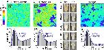 Figure S1. SMdM diffusivity mapping of Cy3B-labeled HEWL in untreated and BSA-supplemented Xenopus egg extracts. (a) Color-coded SMdM diffusivity map for an untreated sample, presented on the same color scale as Fig. 3. (b) Distribution of the 1-ms single-molecule displacements from (a). Blue curve: fit to our single-mode SMdM diffusion model, with resultant apparent diffusion coefficients D and 95% confidence intervals marked. Note that in this sample, a higher concentration of Cy3B-labeled HEWL (~1 nM) was used to increase the detected single- molecule density to facilitate spatial mapping. While this led to a higher background in the displacement distribution (when compared to Fig. 1d), the D value obtained with our fitting model (Eqn. 1) stays consistent, in agreement with what we have analyzed and demonstrated previously (6). (c) Color-coded SMdM diffusivity map for another sample to which BSA was added at 1 mg/mL. (d) Distribution of the 1-ms single-molecule displacements from (c) and fit to our model.